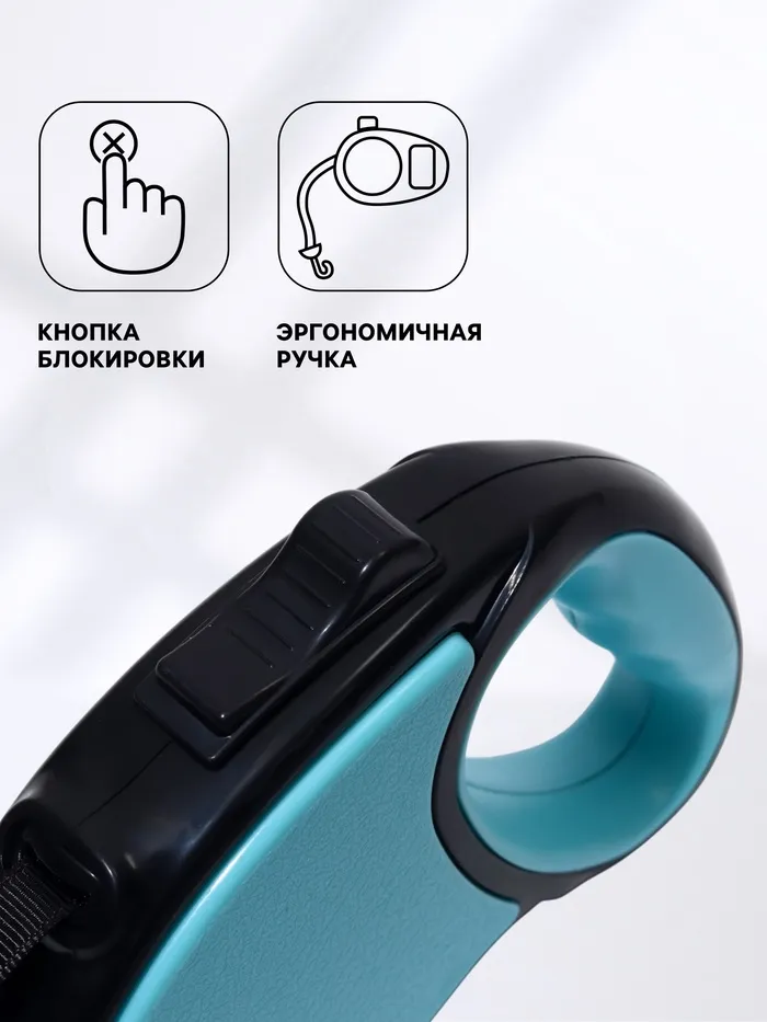 Рулетка "Стиль", под кожу, 3 м, вес животного до 15 кг, чёрно-мятная — Характеристики
