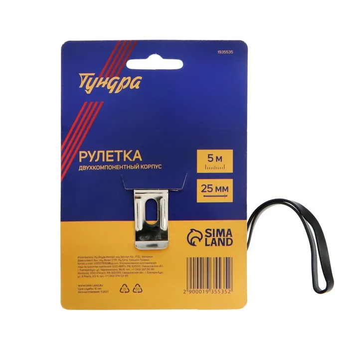 Рулетка ТУНДРА, двухкомпонентный корпус, 5 м × 25 мм — Характеристики