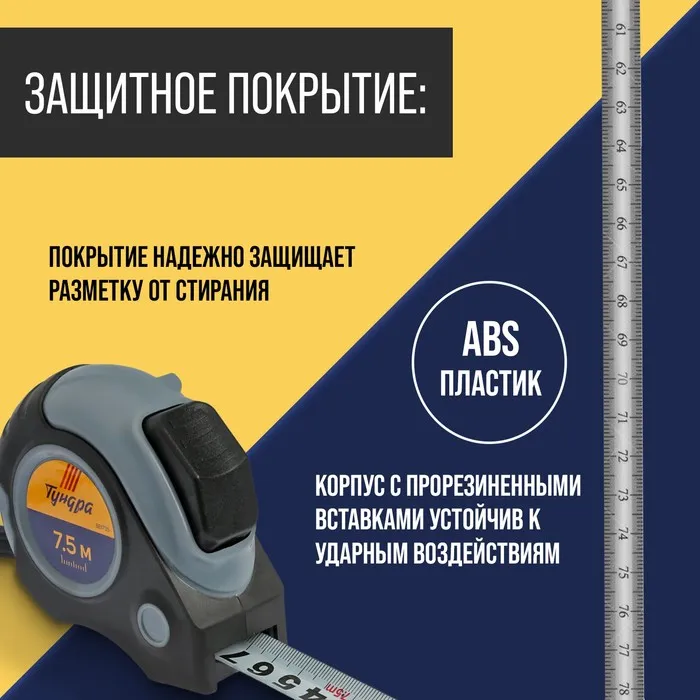 Рулетка ТУНДРА, двухкомпонентный корпус, автостоп, магнитный зацеп, 7.5 м × 25 мм — Характеристики