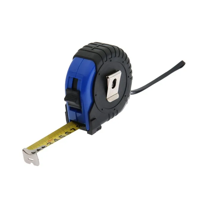 Компактная рулетка имеет обрезиненный пластиковый корпус, благодаря чему не скользит в ладони.