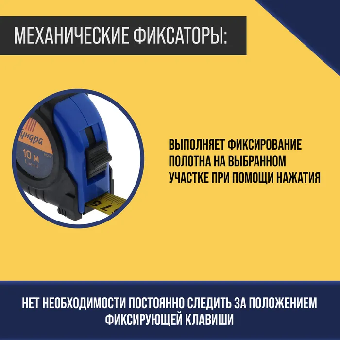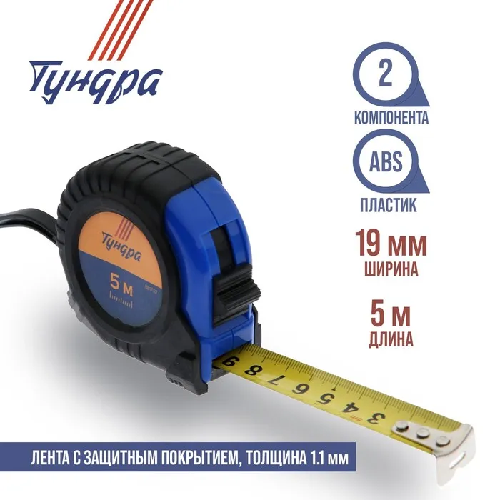 Рулетка ТУНДРА, обрезиненный корпус, 10 м × 25 мм — Характеристики