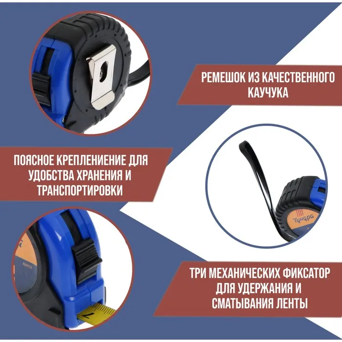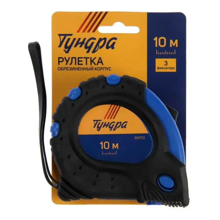 Рулетка ТУНДРА, обрезиненный корпус, 3 фиксатора, 10 м × 25 мм — Характеристики