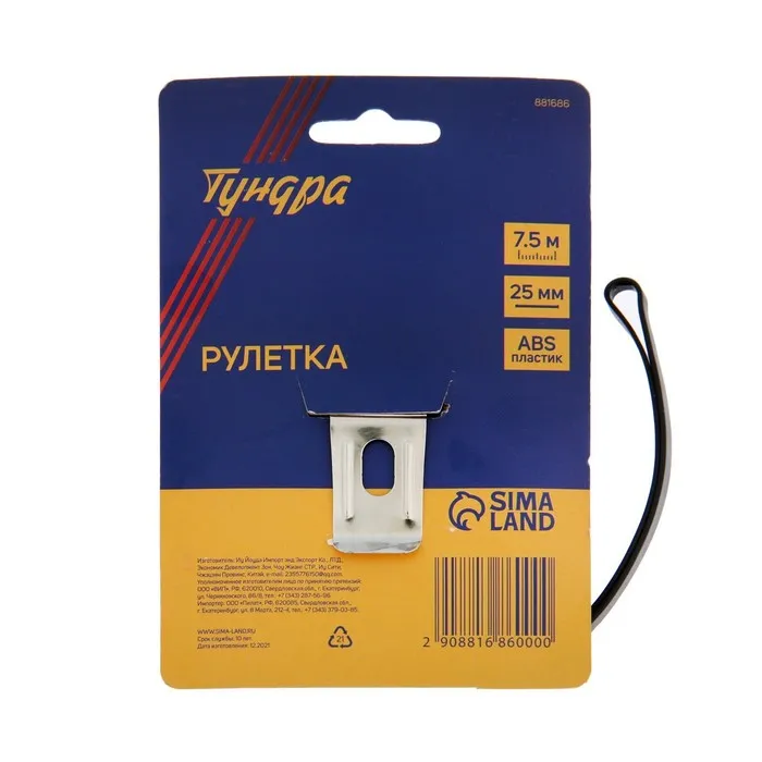 Рулетка ТУНДРА, пластиковый корпус, 7.5 м × 25 мм — Характеристики