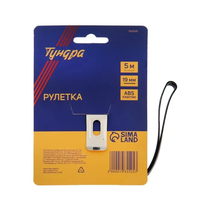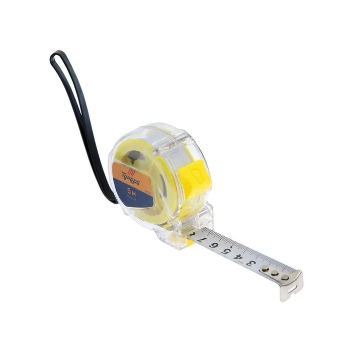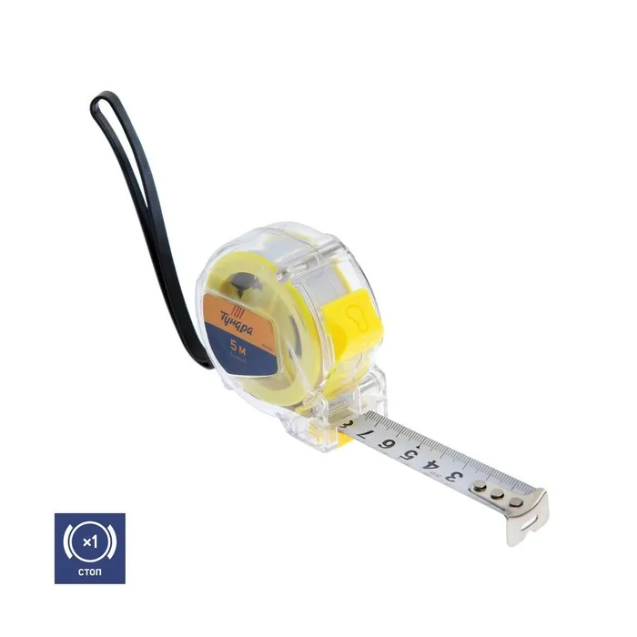 Рулетка ТУНДРА, прозрачный пластиковый корпус, 5 м × 19 мм — Характеристики