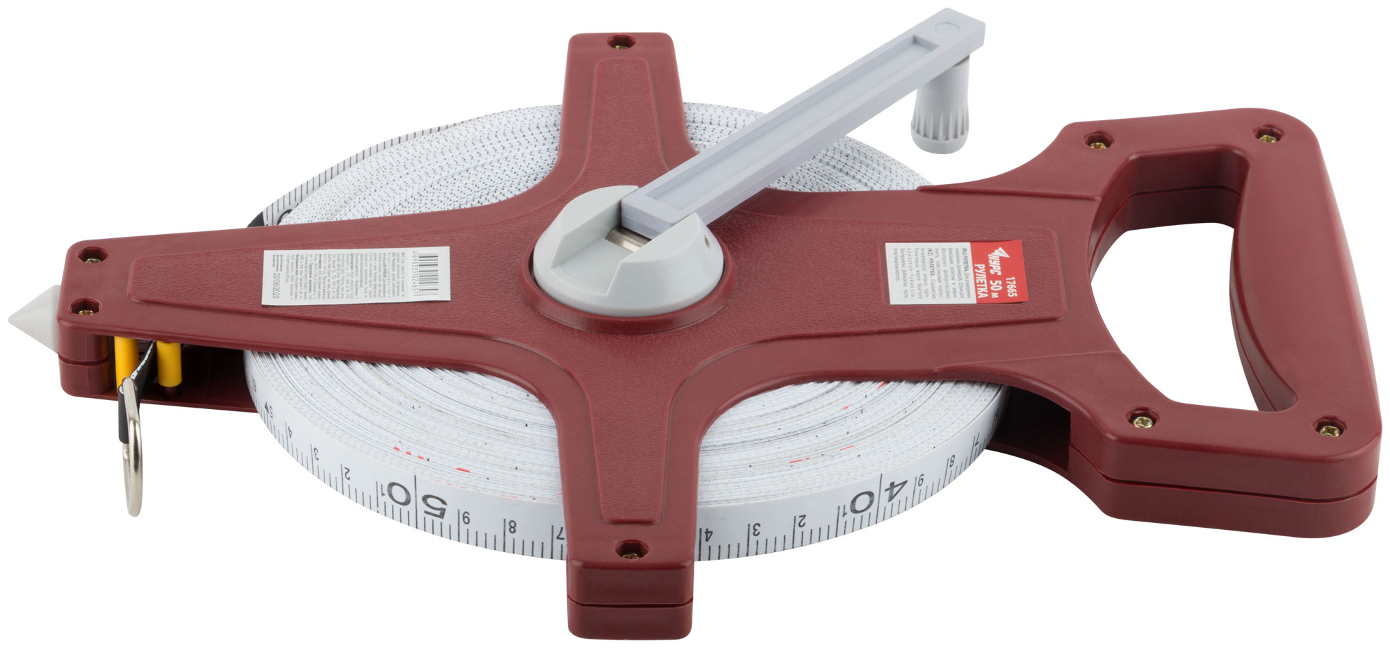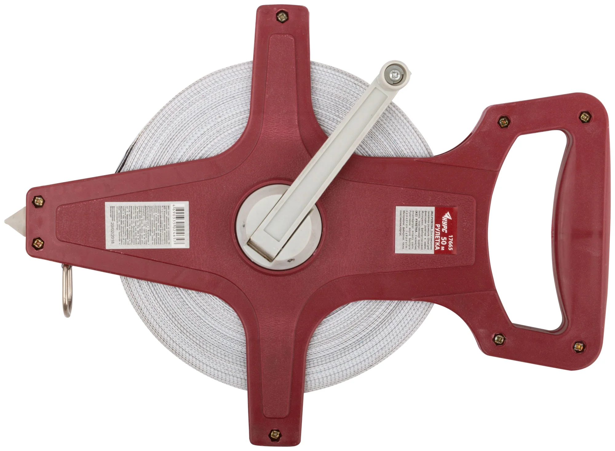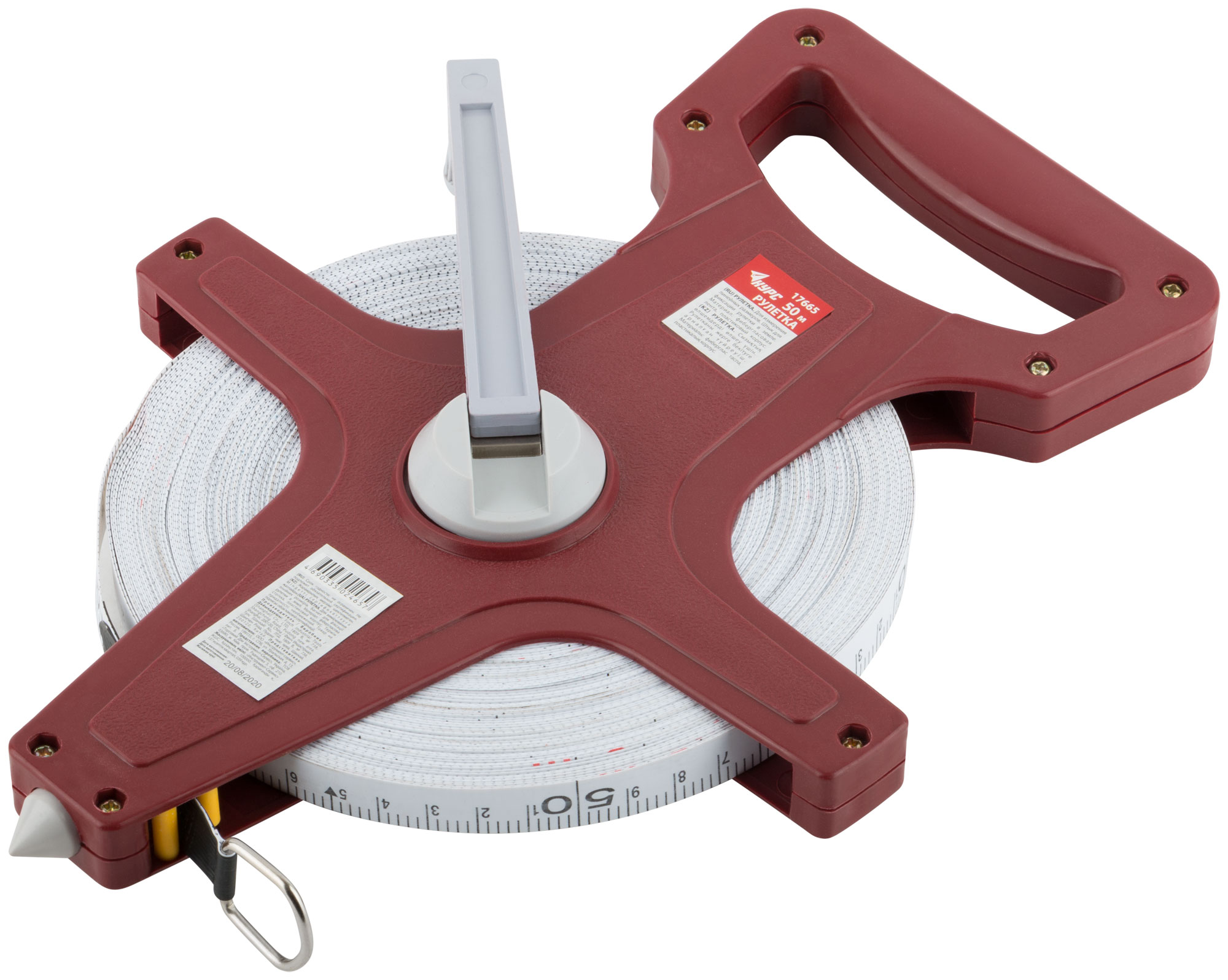 Рулетка землемерная, красный открытый корпус, фибергласовая лента 50 м