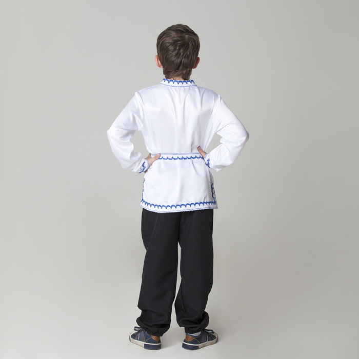 Детская рубаха с поясом в русском народном стиле станет отличным выбором для мальчиков, участвующих в детских праздниках или тематических вечеринках. Этот костюм символизирует традиционную культуру.