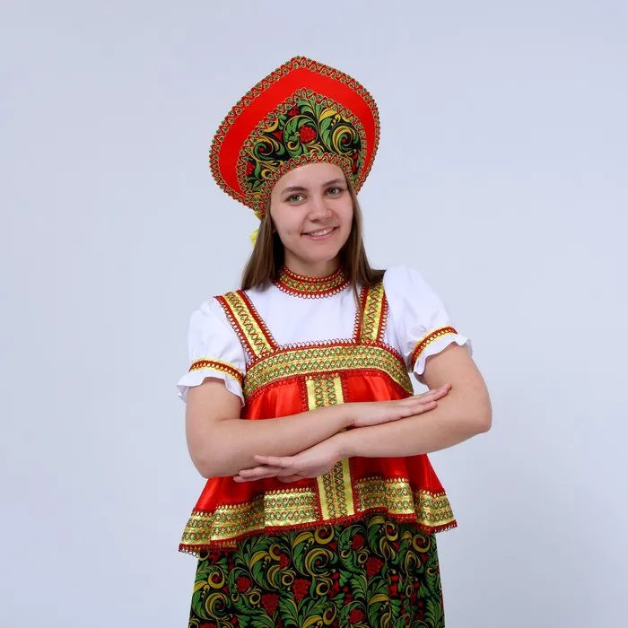 Русский костюм женский «Рябинушка», платье с отлетной кокеткой, кокошник, р. 52-54, рост 170 см — Характеристики