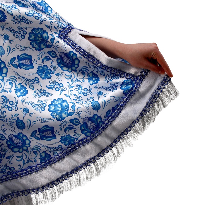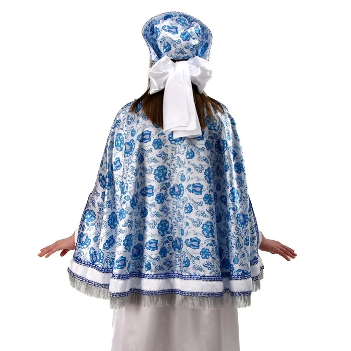 Карнавальный костюм «Гжель» станет ярким и запоминающимся выбором для праздничного мероприятия, тематической вечеринки или фотосессии. Комплект включает в себя нарядную накидку и кокошник, подчеркивающие традиции русской культуры. Костюм создаёт атмосферу народных гуляний, добавляя в образ утончённую изысканность и дух праздника.