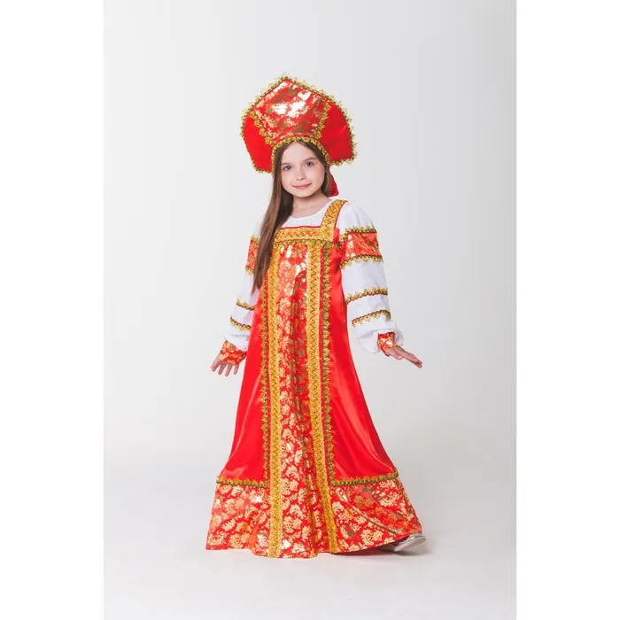 Карнавальный костюм для девочки «Русский народный», сарафан, рубашка, кокошник, 6-7 лет, рост 122-128 см