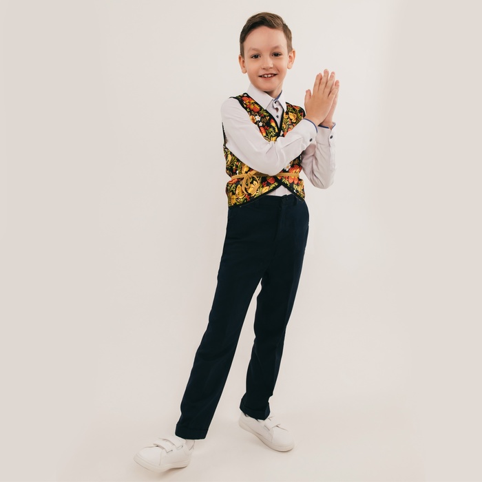 Русско-народная жилетка «Иванушка» с поясом 100 см, р. 98-110 см, чёрный — Характеристики