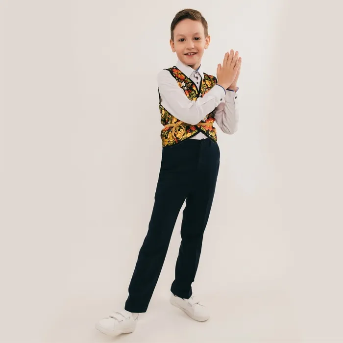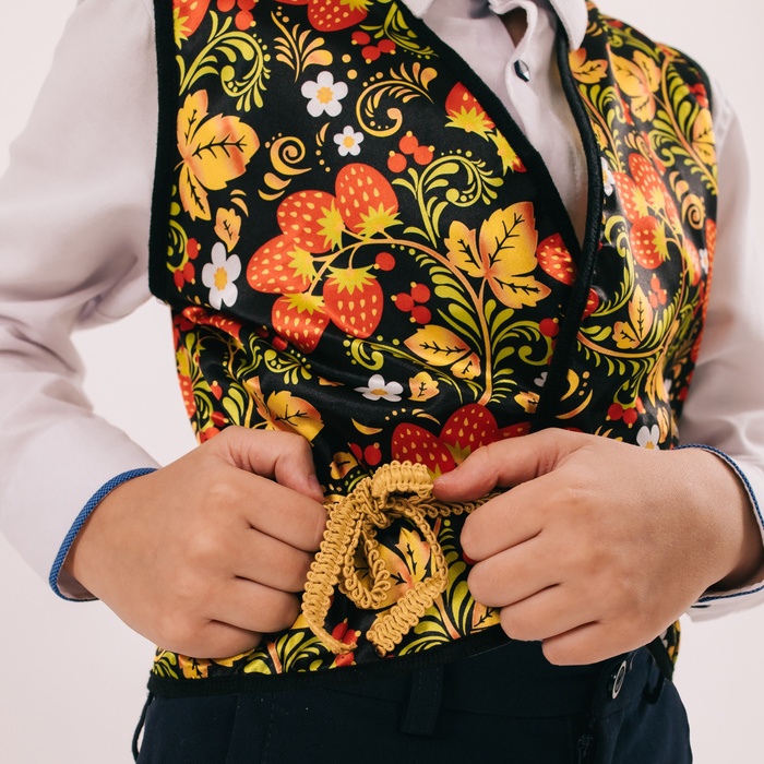 Этот аксессуар станет отличным дополнением к карнавальному костюму, выступив ярким акцентом на празднике. Жилетка подходит для тематических мероприятий, выступлений и утренников в детском саду или школе. Также она может использоваться для фотосессий, создавая оригинальный образ с национальными мотивами.