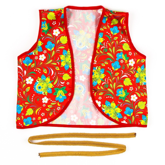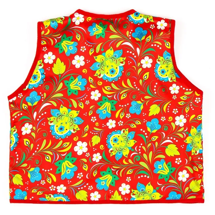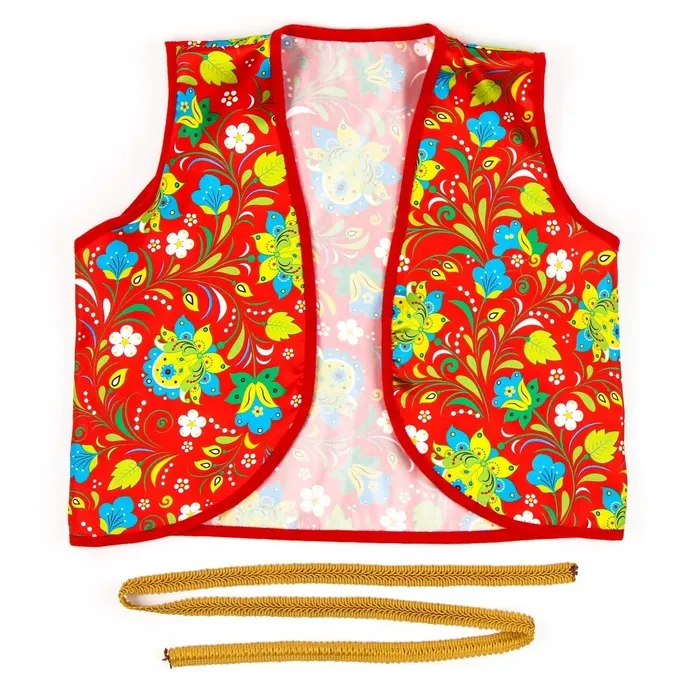 Этот аксессуар станет отличным дополнением к карнавальному костюму, выступив ярким акцентом на празднике. Жилетка подходит для тематических мероприятий, выступлений и утренников в детском саду или школе. Также она может использоваться для фотосессий, создавая оригинальный образ с национальными мотивами.