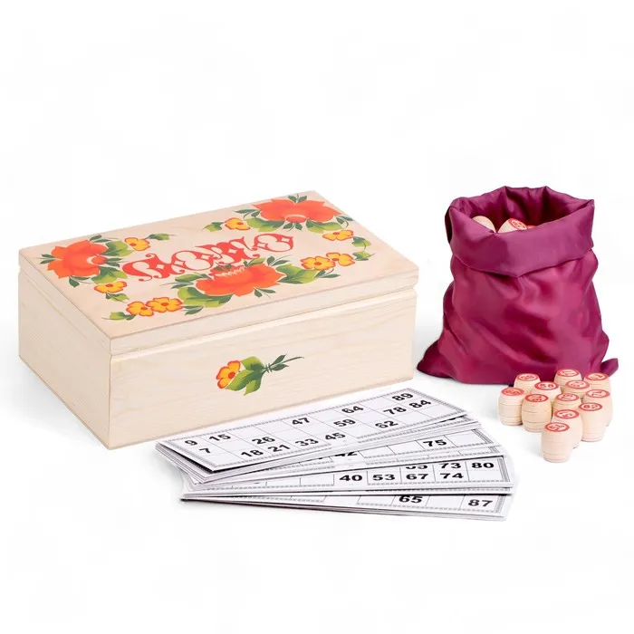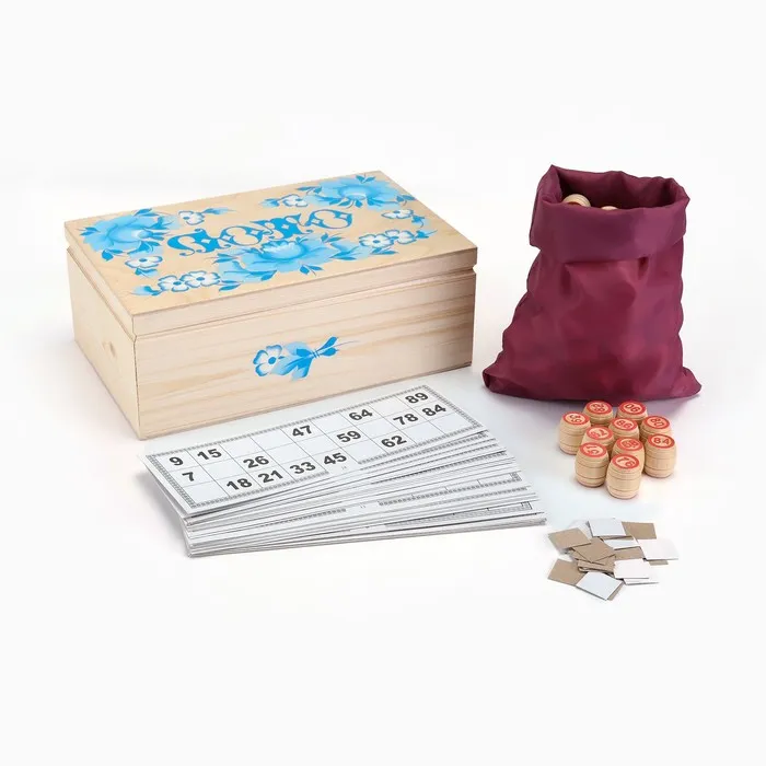 Русское лото деревянное, игра настольная "Роспись", в подарочной шкатулке, с бочонками — Характеристики