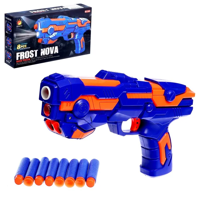 - Стреляет мягкими пулями и пластиковыми шариками.