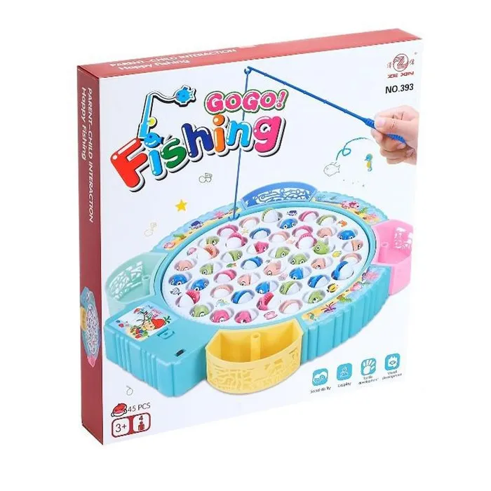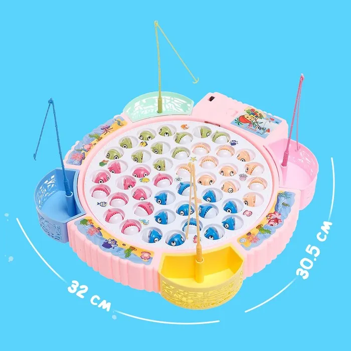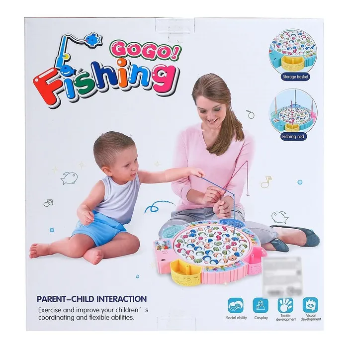 Чтобы начать, нужно включить платформу с рыбками: Игрушки начнут вращаться, и кроха сможет вылавливать их с помощью удочки. Весь процесс сопровождается задорной музыкой, с которой рыбачить ещё увлекательнее.