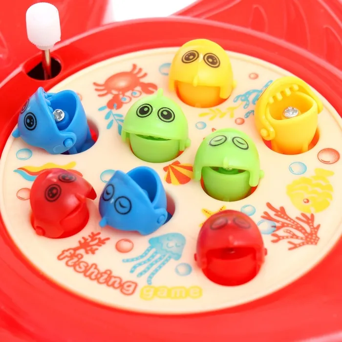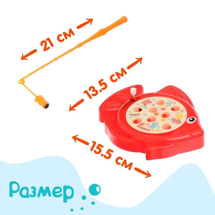 Игрушка для рыбалки с удочкой — этот набор станет отличным развлечением для ребёнка. Он подойдёт для игр дома или на улице, позволяя малышу тренировать ловкость и развивать фантазию. Механизм основан на магнитах, что делает процесс ловли безопасным и увлекательным для детей от трёх лет.