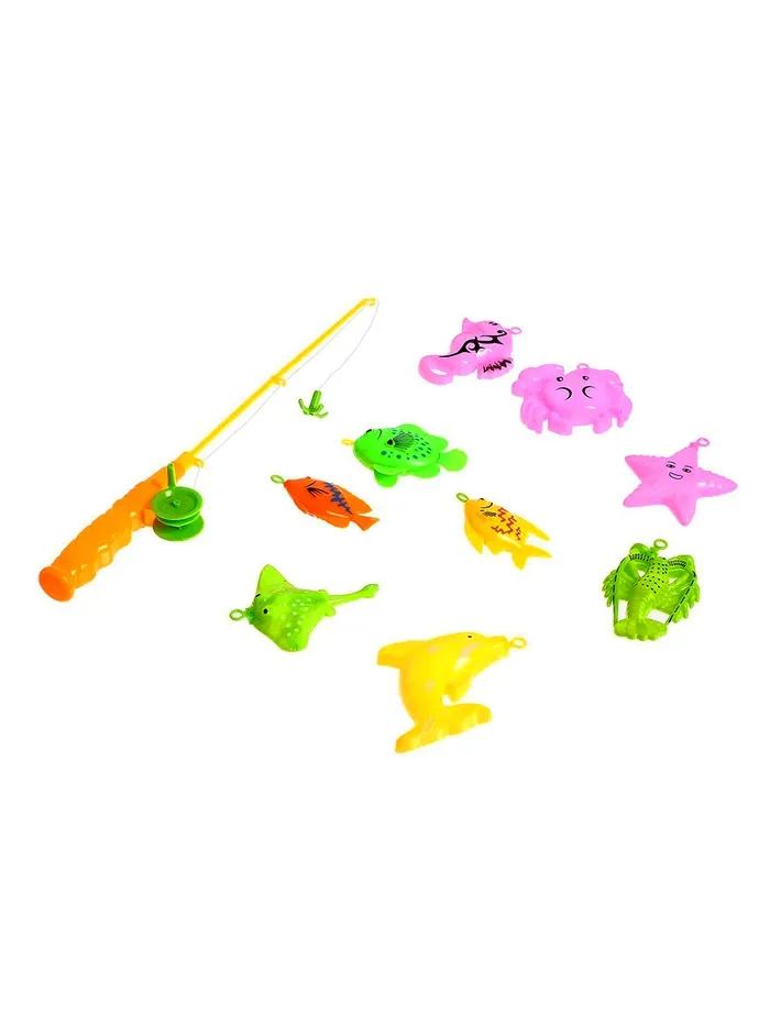 В комплект входит 4 удочки, что позволяет одновременно четырём малюткам играть в эту занимательную игру. Задача каждого карапуза — выловить как можно больше морских обитателей. Победит тот, кто сумеет поймать больше всех забавных рыбок.