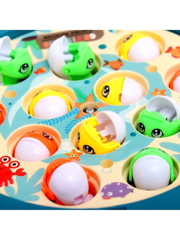 Чтобы начать, заведите игрушку. Фигурки начнут крутиться и перемещаться с места на место. Поймайте рыбку магнитной удочкой и быстро поднимите её вверх, стараясь не упустить добычу.