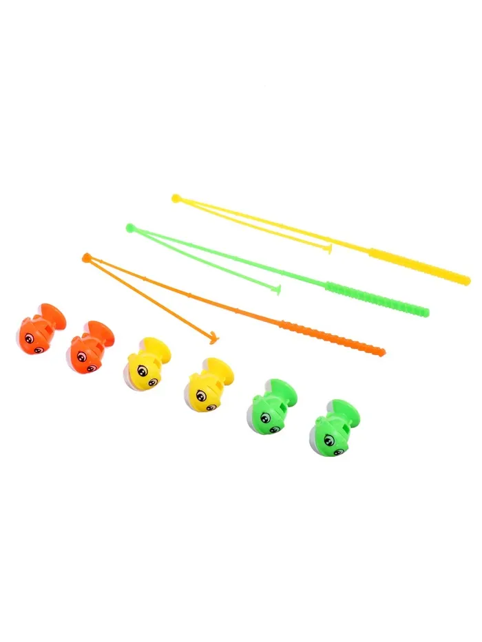 В комплект входит магнитная удочка, которая позволит деткам соревноваться друг с другом. Кто первым сумеет выловить всех обитателей «водоёма», тот одержит победу!