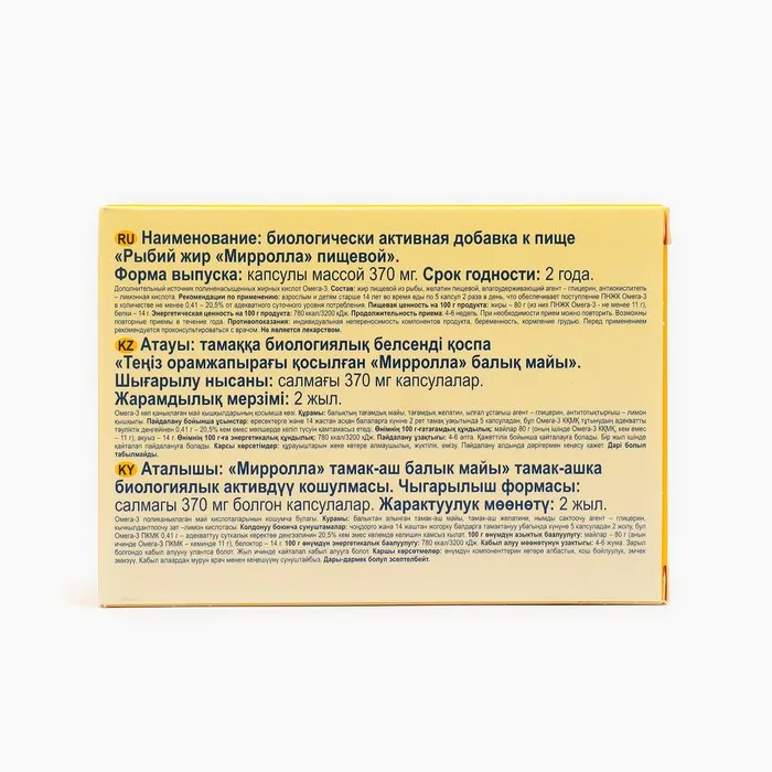 Рыбий жир Mirrolla, 100 капсул по 0,37 г — Характеристики