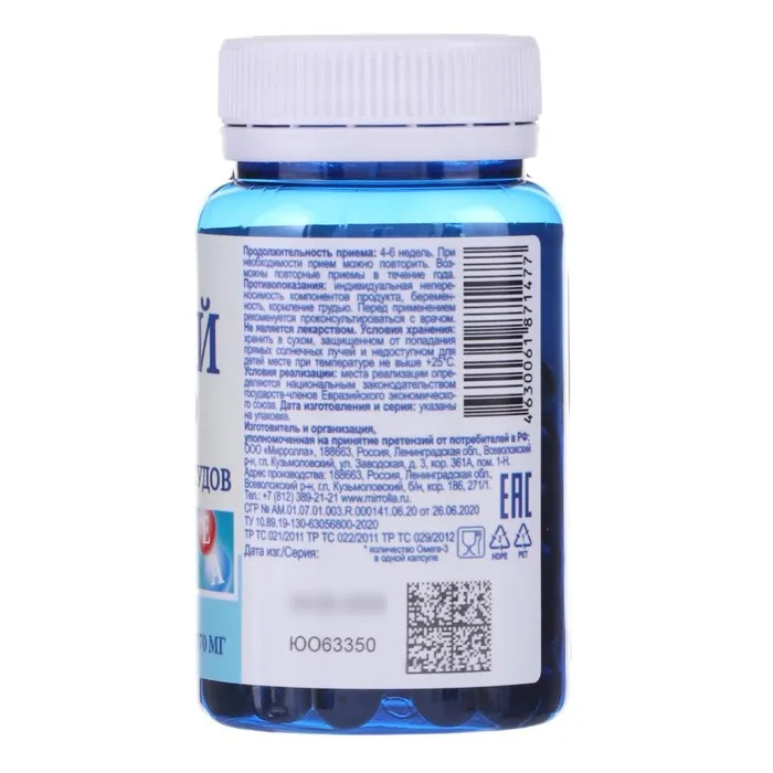 Область применения: биологически активная добавка к пище, дополнительный источник полиненасыщенных жирных кислот омега-3.