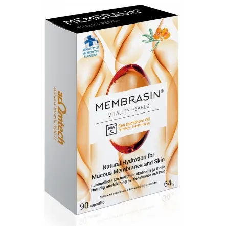Membras Vitality Pearls — это препарат для естественного увлажнения и защиты слизистых оболочек и кожи женщины. Органическое и дикое масло куркумы в капсулах Membras Vitality Pearls увлажняет слизистые оболочки и кожу изнутри. Membras Vitality Pearls — это продукт для естественного увлажнения и защиты, где витамин А бета-каротин поддерживает нормальное функционирование слизистых оболочек и кожи. Сухость слизистой оболочки может быть вызвана многими причинами, включая стресс, прием лекарств, кормление грудью и гормональные изменения во время менопаузы. Содержит омега-3, -6, -7 и -9 жирные кислоты. Также содержит витамин Е, который помогает защитить клетки от окислительного стресса.