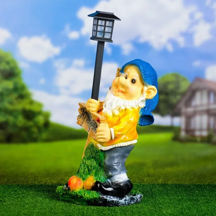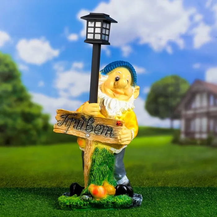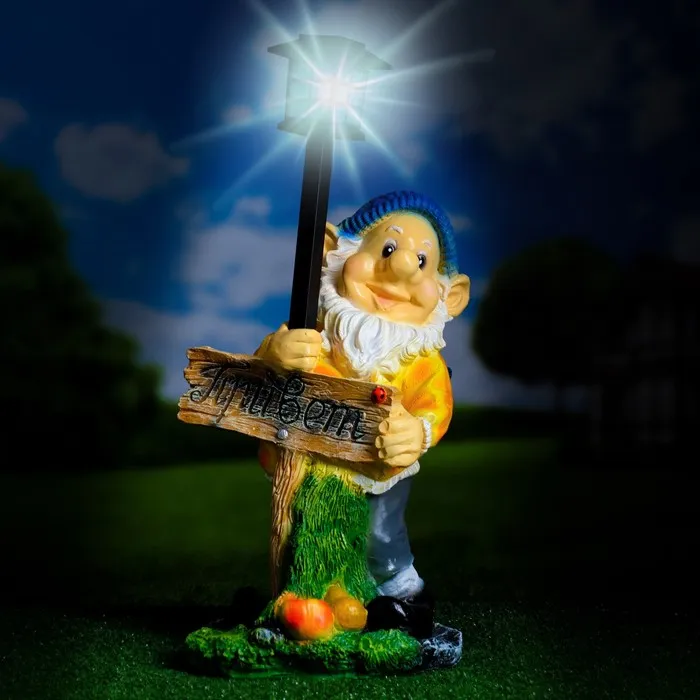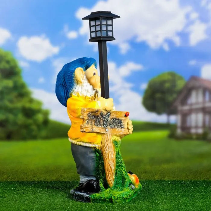 Садовая фигура - фонарь из полистоуна «Гном с табличкой», 30×27×44 см — Характеристики