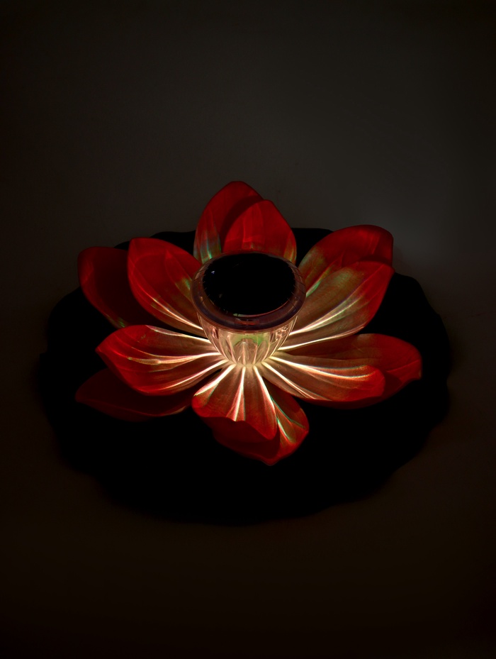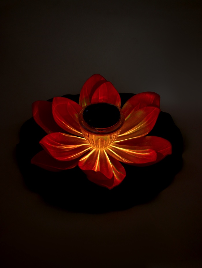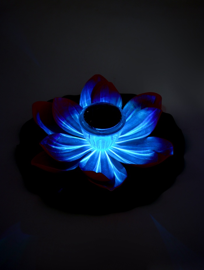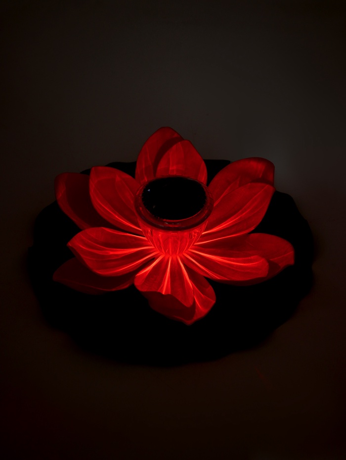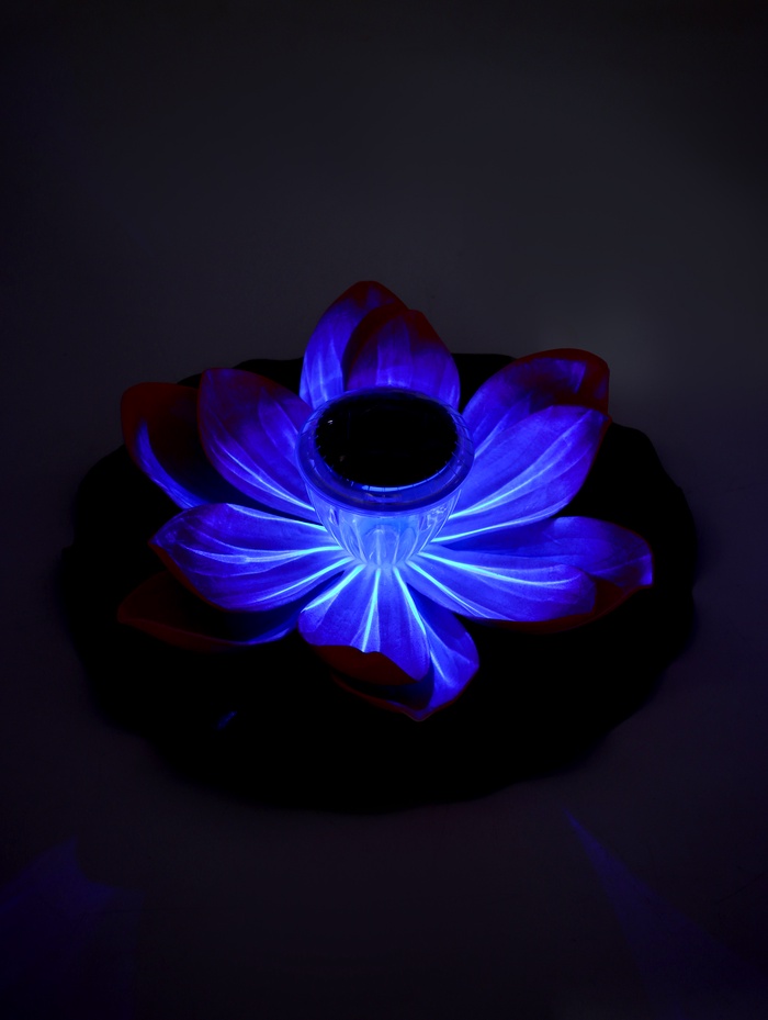 - Светящееся преображение: с наступлением темноты лотос раскрывается светом. Солнечная батарея заряжается днём, а вечером фонарь можно включить, создавая на воде мерцающую картину.