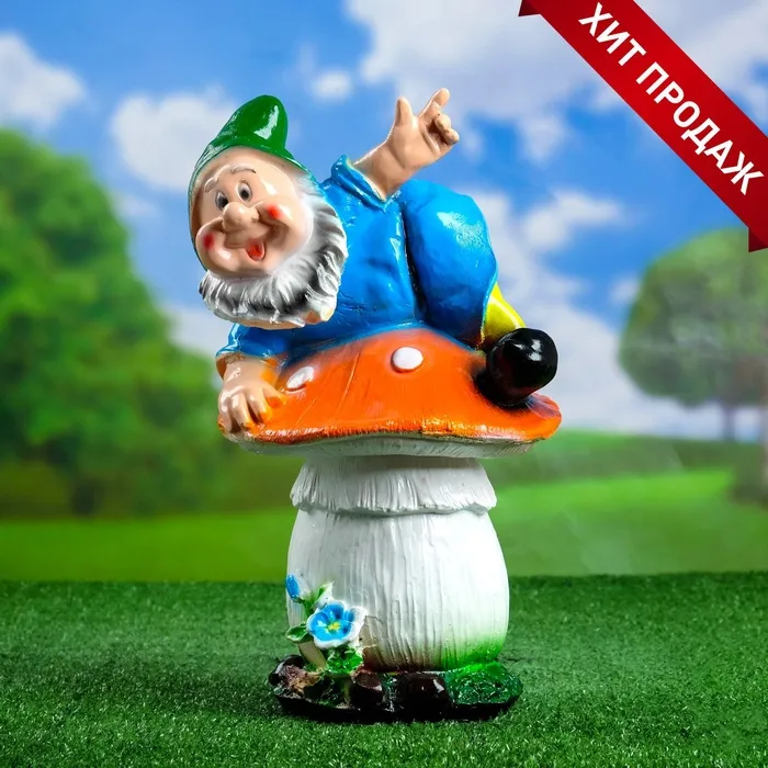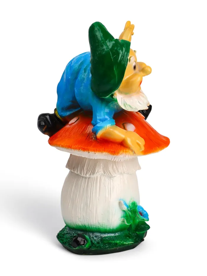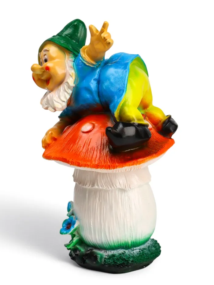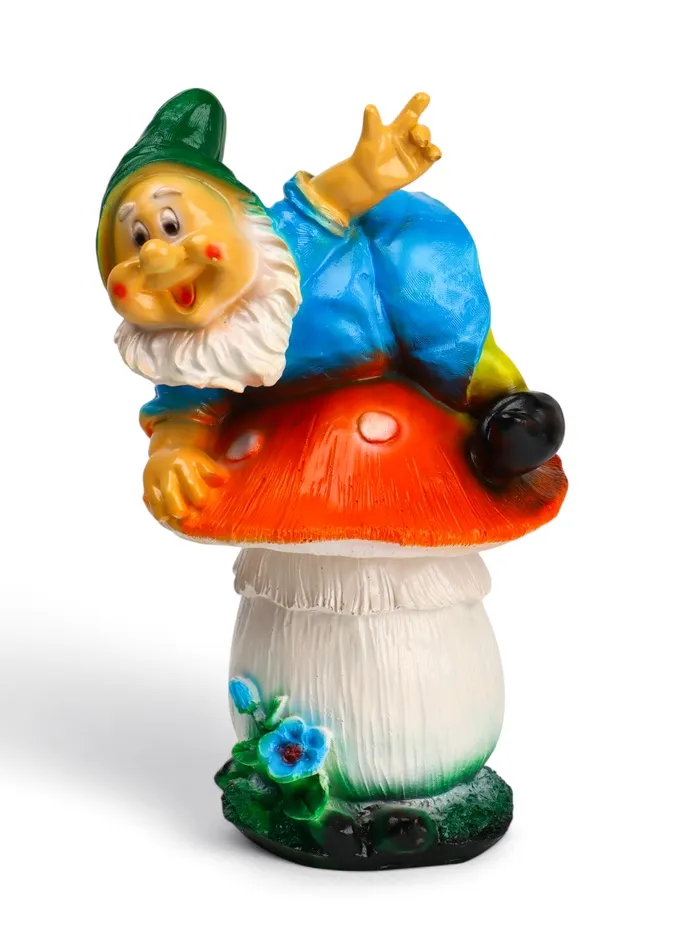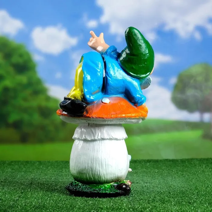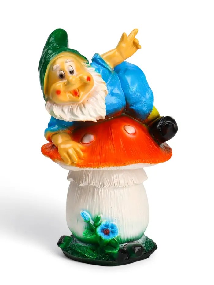 Садовая фигура "Гном на мухоморе на животе" 37х22см,