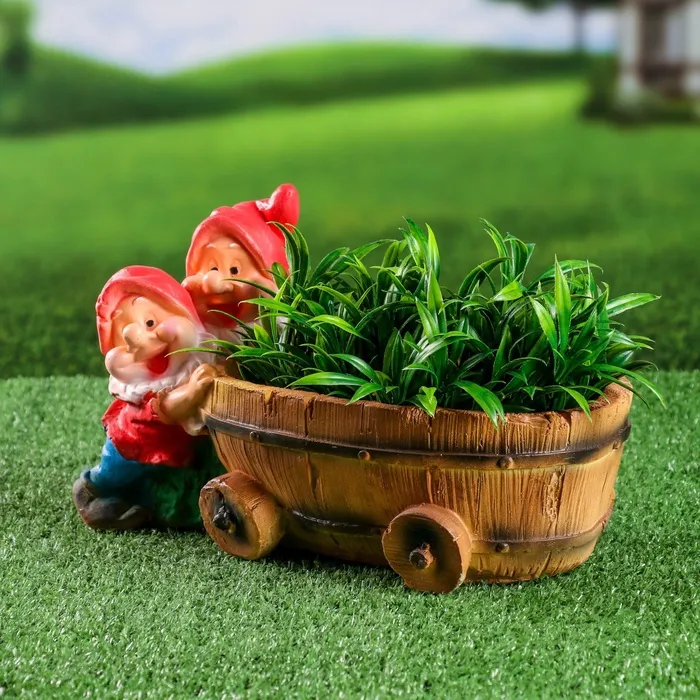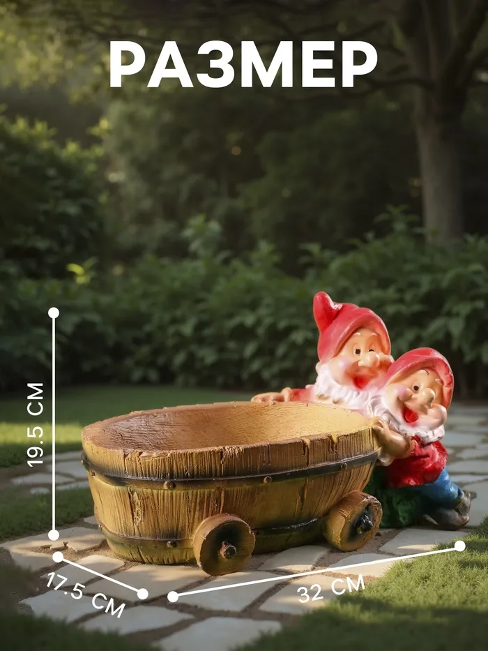 Садовая фигура из гипса «Два гнома с телегой», 19.5×32×17.5 см — Характеристики