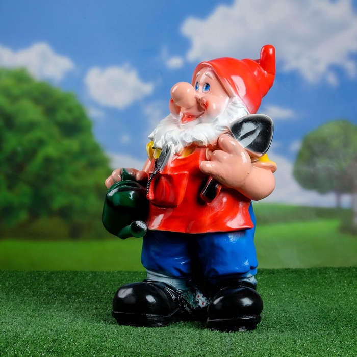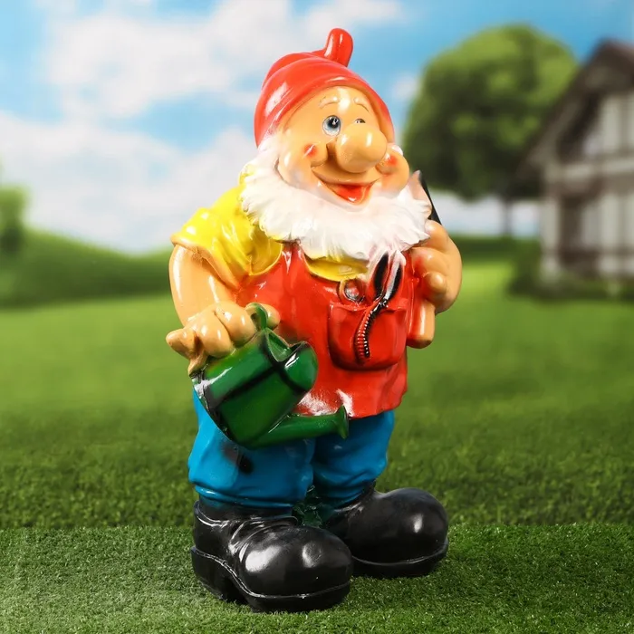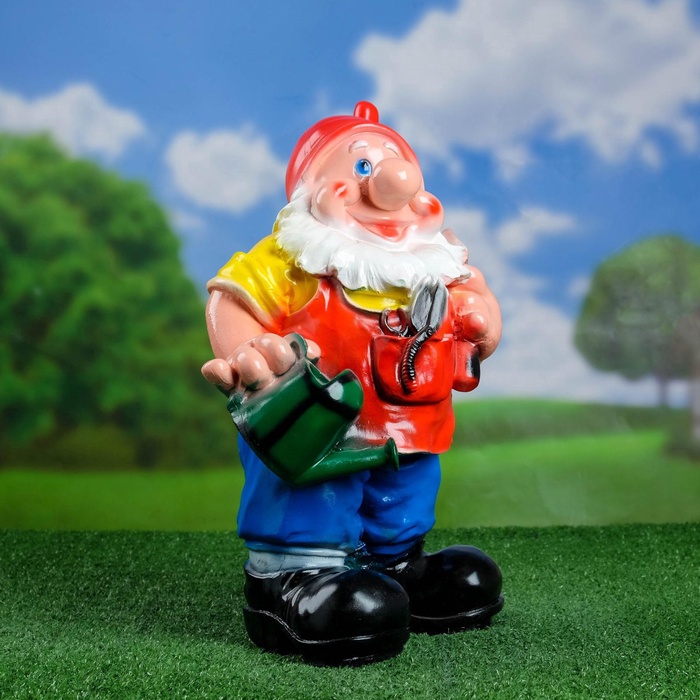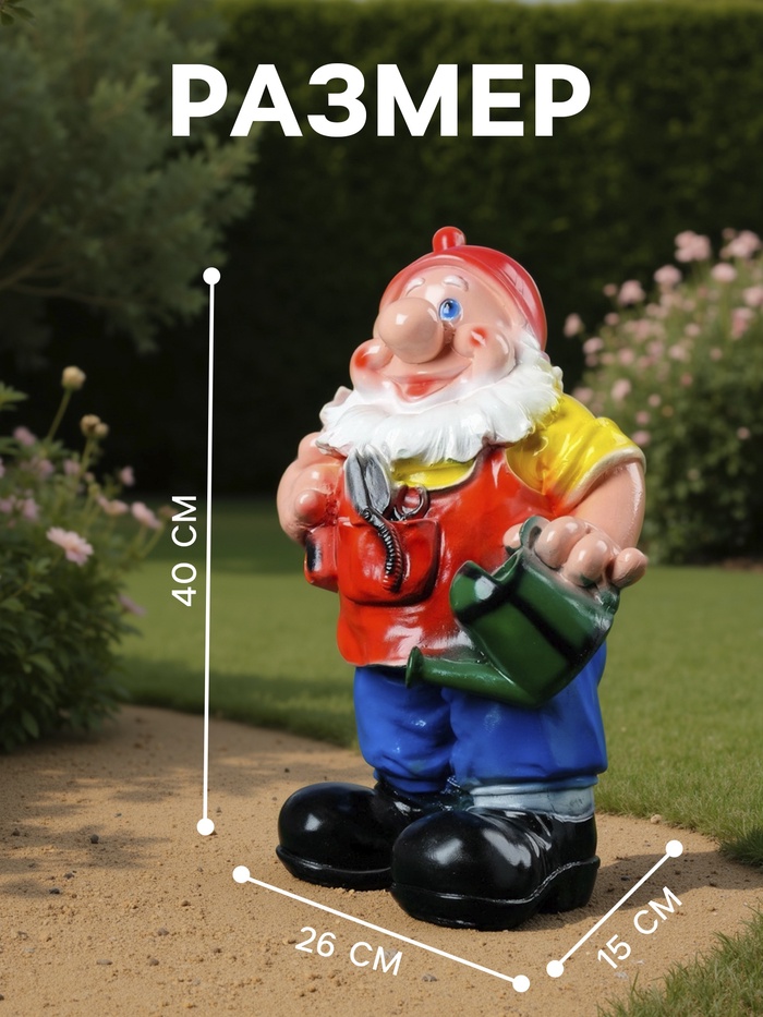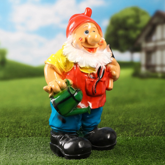 Садовая фигура из гипса «Гном с лейкой», 40×15×26 см — Характеристики