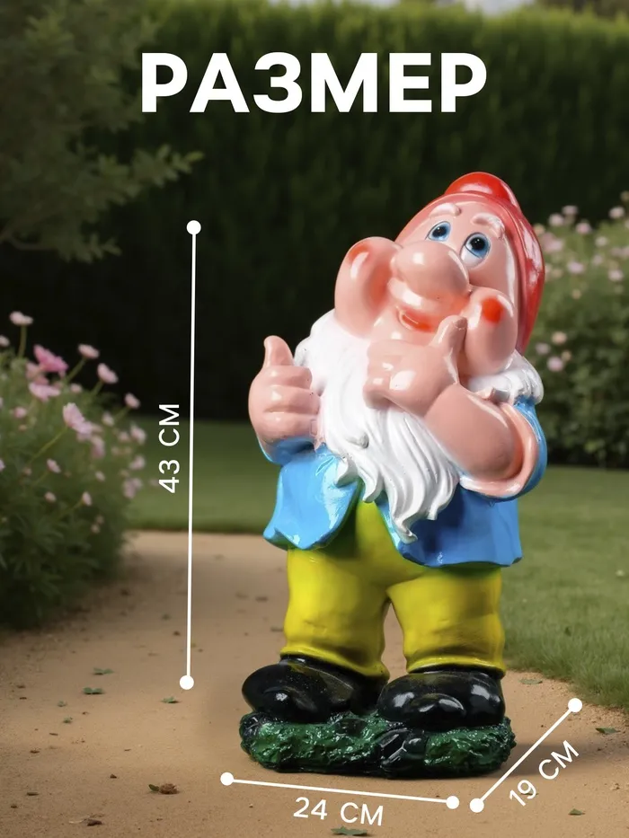 Садовая фигура из гипса «Гном с лейкой», 75×32×39 см — Характеристики