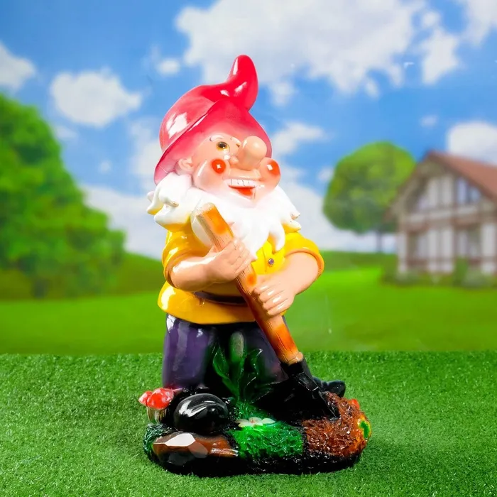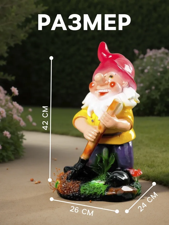 Садовая фигура из гипса «Гном с лопатой на подставке», 42×24×26 см — Характеристики