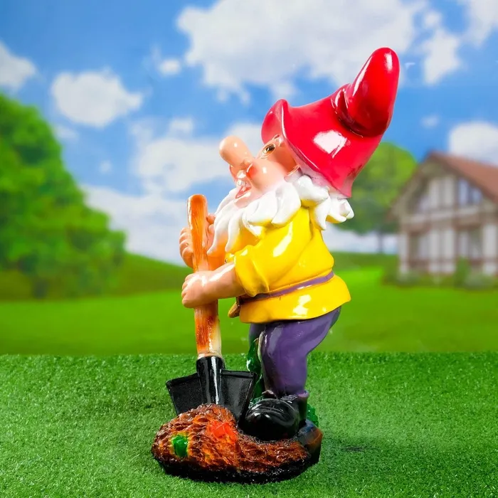 Садовая фигура из гипса «Гном с лопатой на подставке», 42×24×26 см