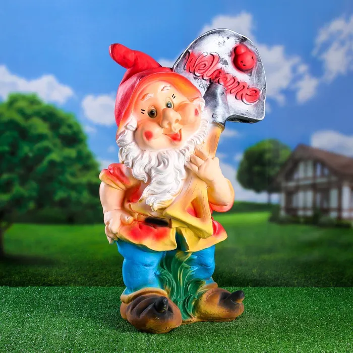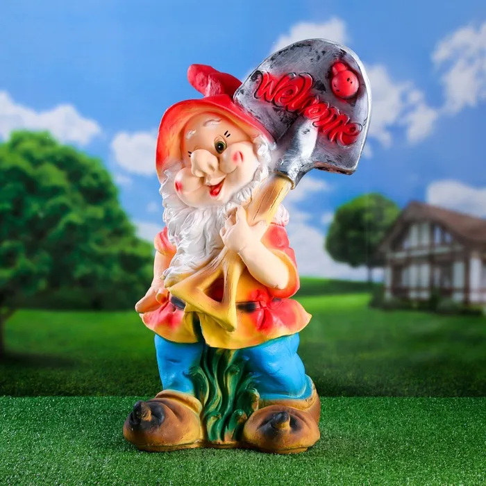 Садовая фигура из гипса «Гном с лопатой ВЕЛКОМ», 70×31×38 см, МИКС — Характеристики