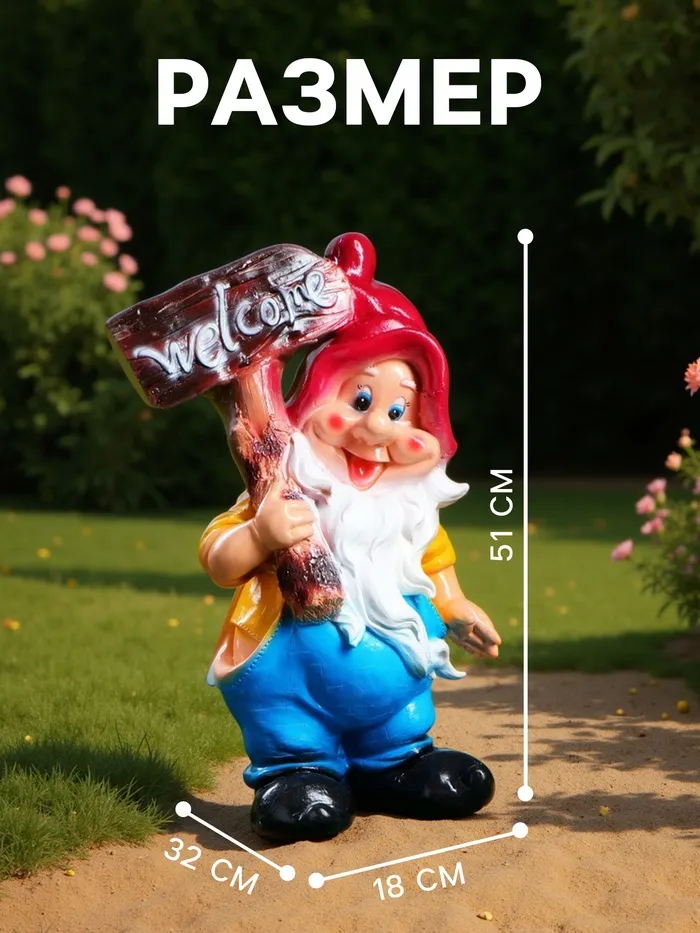 Садовая фигура из гипса «Гном с табличкой», 51×18×32 см — Характеристики