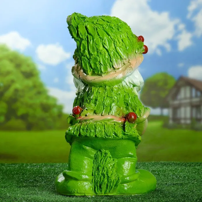 Садовая фигура из гипса «Гном с желудями», 45×26 см, зелёная