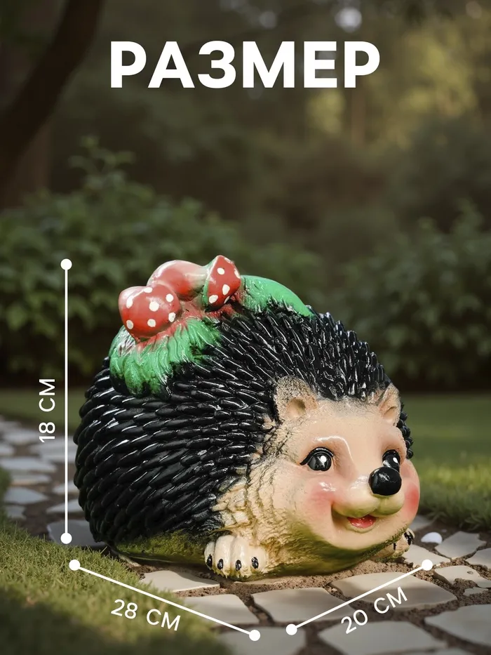 Садовая фигура из гипса «Ёжик с грибочками», 18×28×20 см — Характеристики