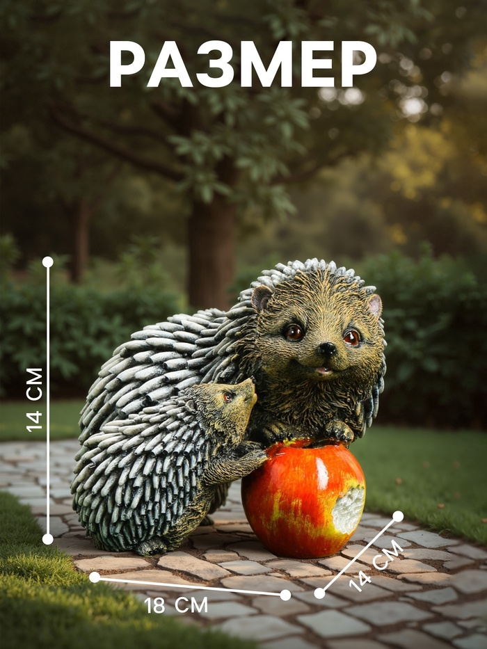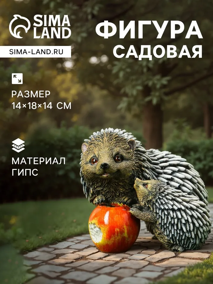 Садовая фигура из гипса «Ёжик с яблоком», 18×14×14 см — Характеристики