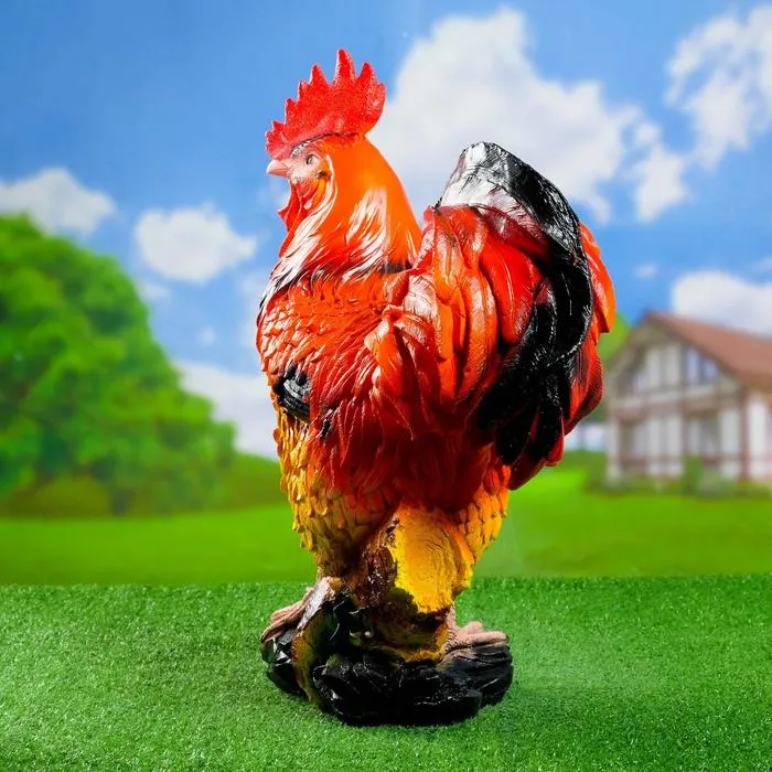 Садовая фигура из гипса «Петух» красный, 43×18×55 см — Характеристики