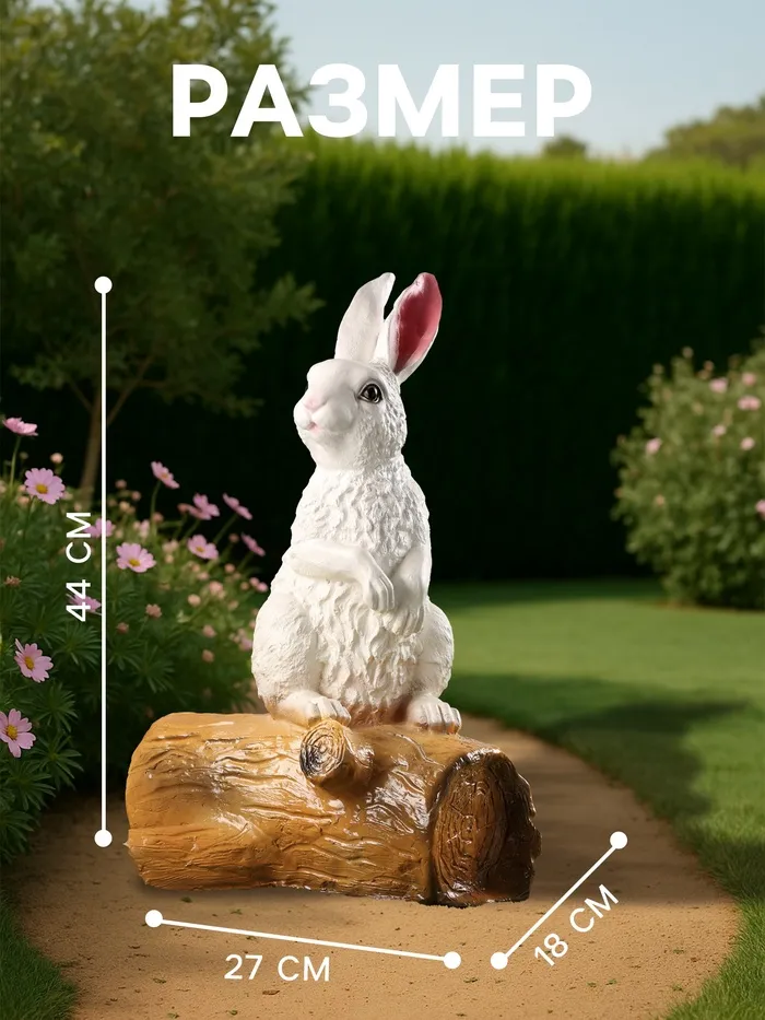 Садовая фигура из гипса «Зайка на бревне», 44×18×27 см — Характеристики