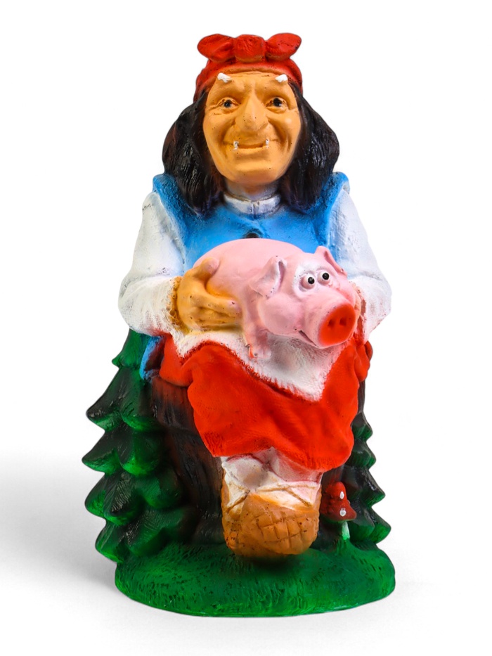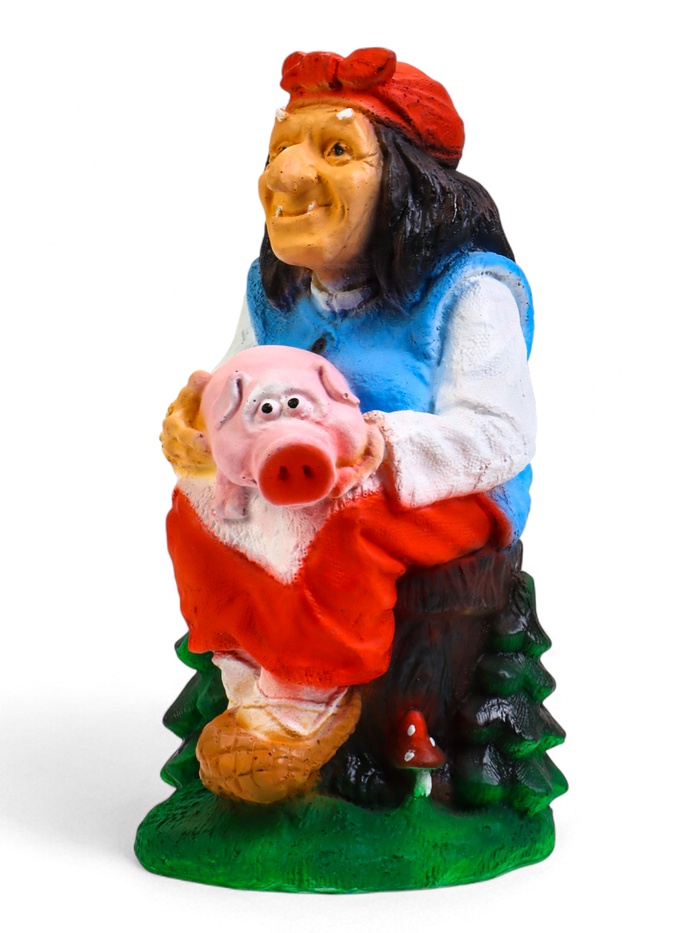 Садовая фигура из полистоуна «Баба Яга с поросёнком», 20×20×34 см — Характеристики