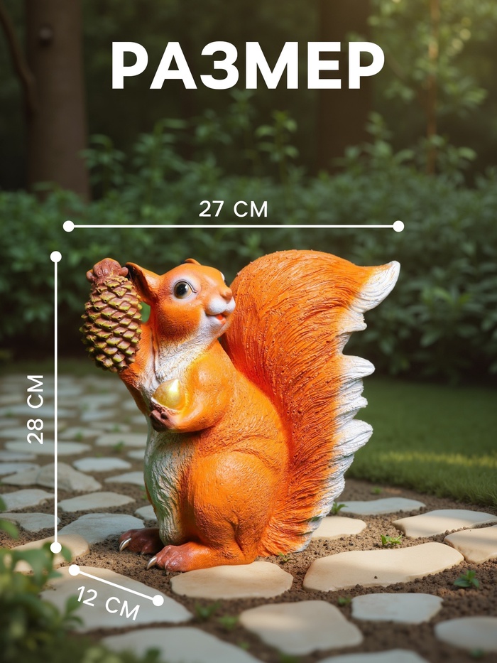 Садовая фигура из полистоуна «Белка с шишкой», 28×12×27 см — Характеристики