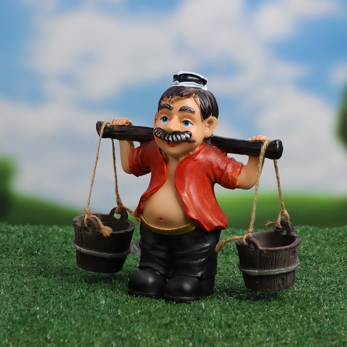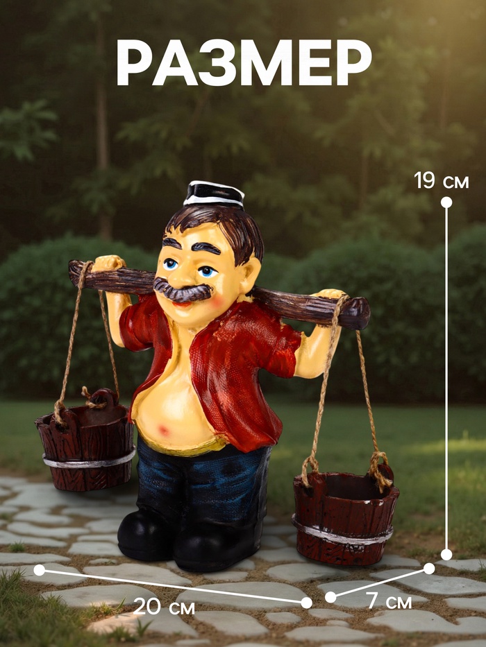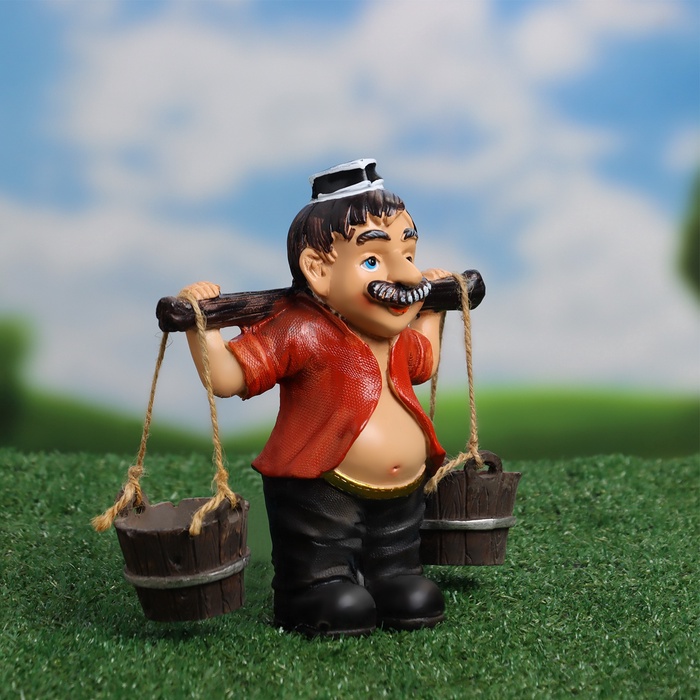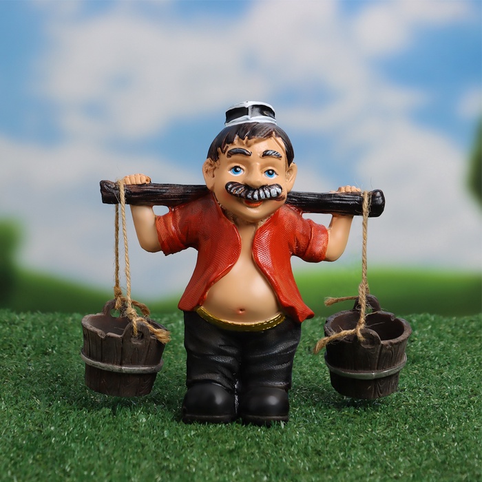 Садовый декор «Дедушка с вёдрами» — это фигурка для создания сюжетной композиции в саду. Фигурка высотой 19 см изображает персонажа с вёдрами на коромысле и добавляет пространству деревенский колорит.