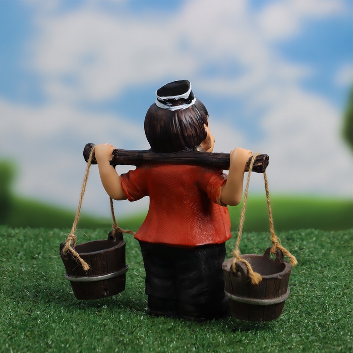 - Полистоун в основе: материал точно передаёт складки одежды, черты лица и текстуру деревянного коромысла. Фигурка сохраняет под открытым небом в течение всего сезона.