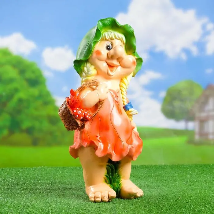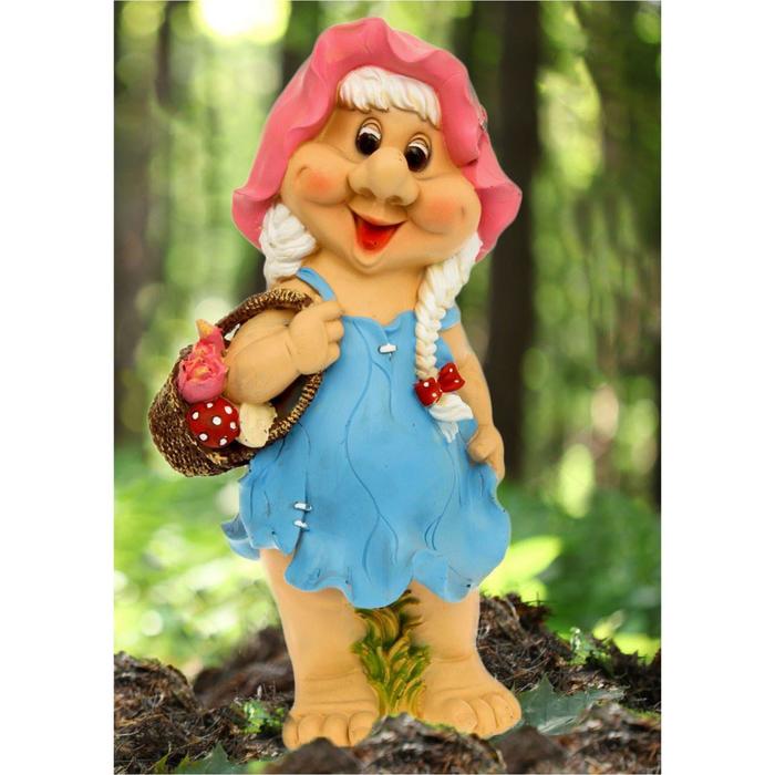 Садовая фигура из полистоуна "Девочка - гном с корзинкой", 26×18×52 см