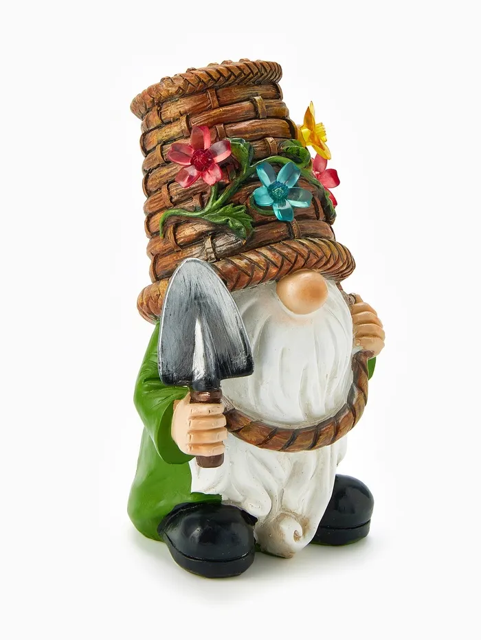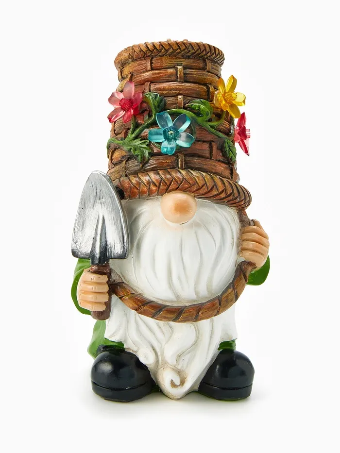 Садовая фигура «Гном с лопатой» из полистоуна - бюджетное украшение для сезонного использования. Яркая 24-сантиметровая фигурка с детализированной лопатой выполнена в насыщенных цветах. Полихромная подсветка на солнечной батарее создает праздничное настроение в вечернем саду.