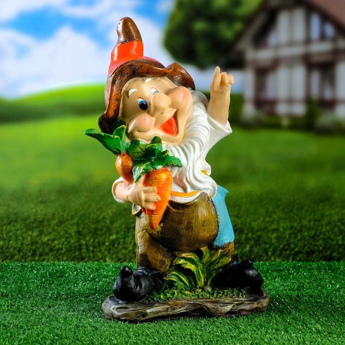 Садовая фигура из полистоуна «Гном с морковкой», 19×38 см, МИКС
