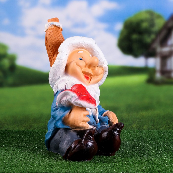 Садовая фигура из полистоуна «Гном сидячий», 26×30×37 см