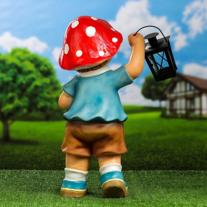 Садовая фигура из полистоуна «Гномик-грибочек с фонарём», 21×15×45 см — Характеристики